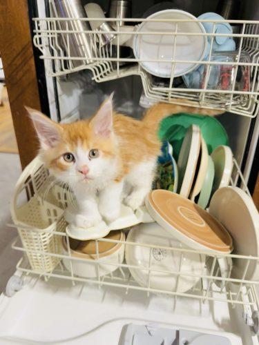 Moscow is doing great and getting to know his new sister. His sister Munchie has been sharing her food and treats.  He loves helping with the dishes(even when they are clean they get washed again!)