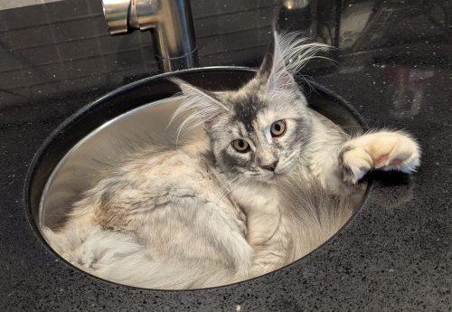 Hi, Amy. Luna is now 1 year old and the superstar of the family. She loves hunting, playing with her toys or household items she turns into toys, finding new places to sleep, pouncing on her 17 year old cat sister, and investigating all things water related. She is a snuggle monster when she feels like it and the sweetest 15 pound cat out there! Thanks for bringing her into our lives!