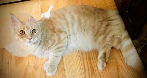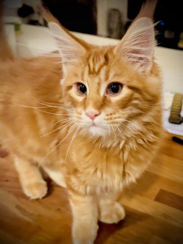 Thought I’d give you a quick 4 month update on Cheddar.  He saw the vet yesterday for another vaccine and pre-surgical visit/blood work (Neutering).  Thankfully, he’s a healthy little guy (his other testicle did descend BTW).  He weighs 7 pounds and is an absolute joy.  He and my other Maine Coone, Mouse, have become best buds.  He’s also very bonded with my daughter and she thinks the world of him.  All very cute.